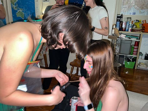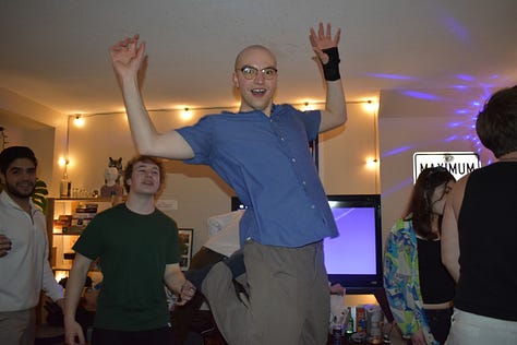 If you want to host parties I would recommend finding a group to host them with where each of you naturally manages different things. Ideally this group would be your roommates, and you would all live in a good space for parties. In my situation, this factor alone was worth choosing to live with more roommates. If you’re not in that ideal situation, just choose whoever has the least-shitty living space and get started. You will get better at it as you go! I have hosted a couple terrible parties (none pictured here), but at least I will never host a party which is terrible for the same reason twice.